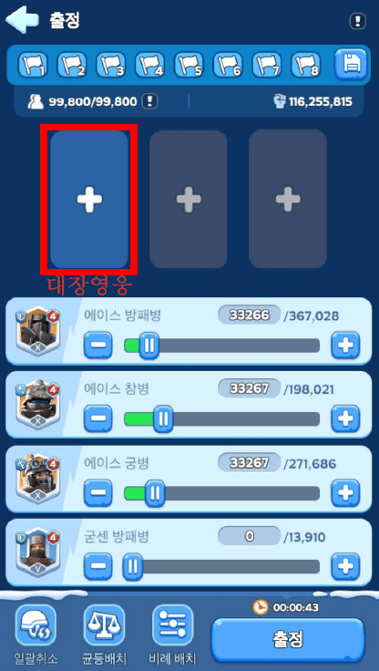 (2) 집결원으로 참여하게 되는 경우, 세 영웅중 대장영웅의 원정 1 스킬만 max로 올리면 됩니다.